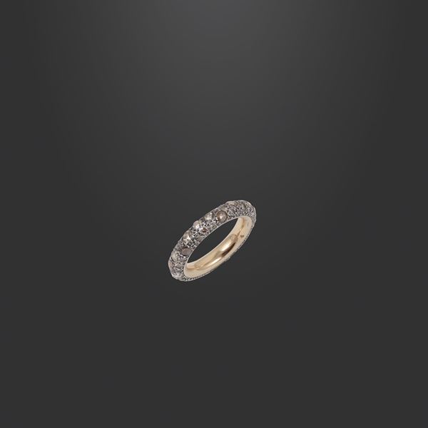 925 SILVER, 18KT GOLD AND BROWN DIAMONDS RING, POMELLATO "Tango"