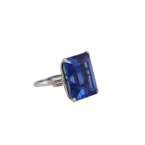 PLATINUM, SRI LANKA SAPPHIRE AND DIAMONDS RING