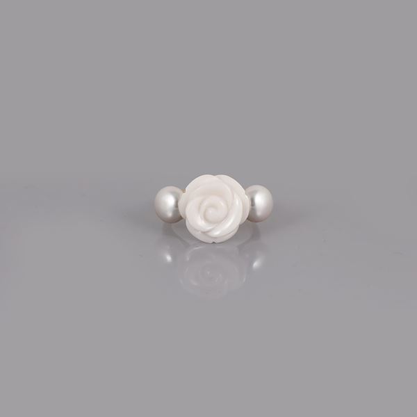 * 18KT GOLD, AGATE AND FRESHWATER PEARLS RING