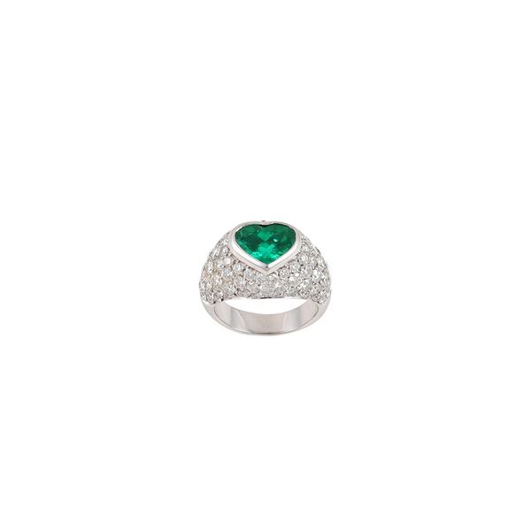18KT GOLD, COLOMBIA EMERALD AND DIAMONDS RING