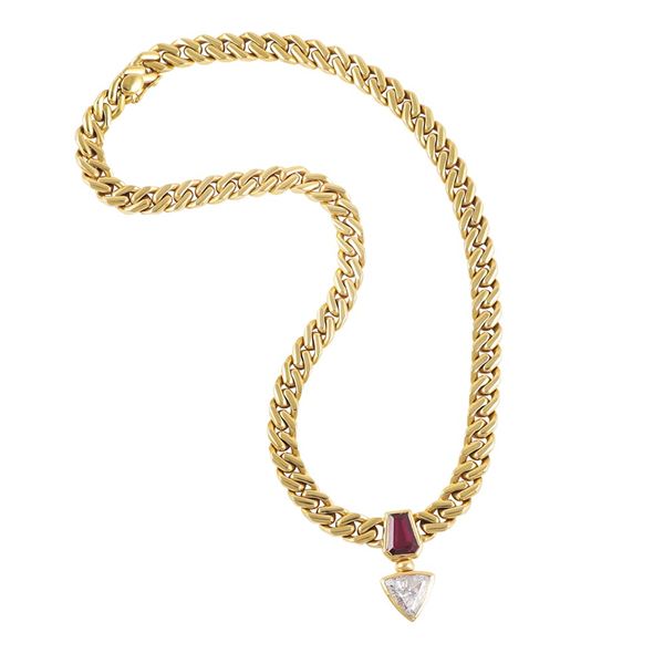 18KT GOLD, DIAMOND AND RUBY NECKLACE
