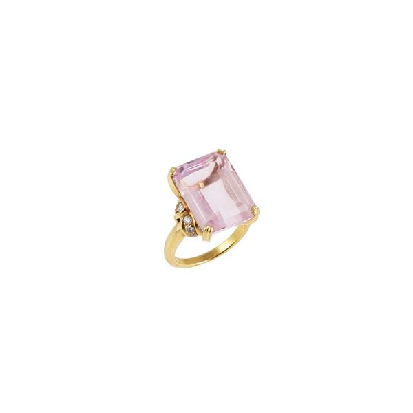 18KT GOLD, KUNZITE AND DIAMONDS RING