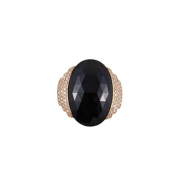18KT GOLD, ONIX AND DIAMONDS RING