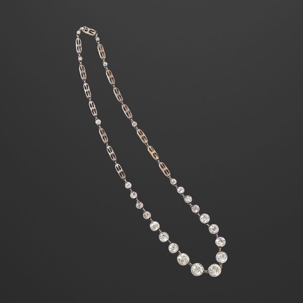 18KT GOLD, PLATINUM AND OLD EUROPEAN CUT DIAMONDS NECKLACE