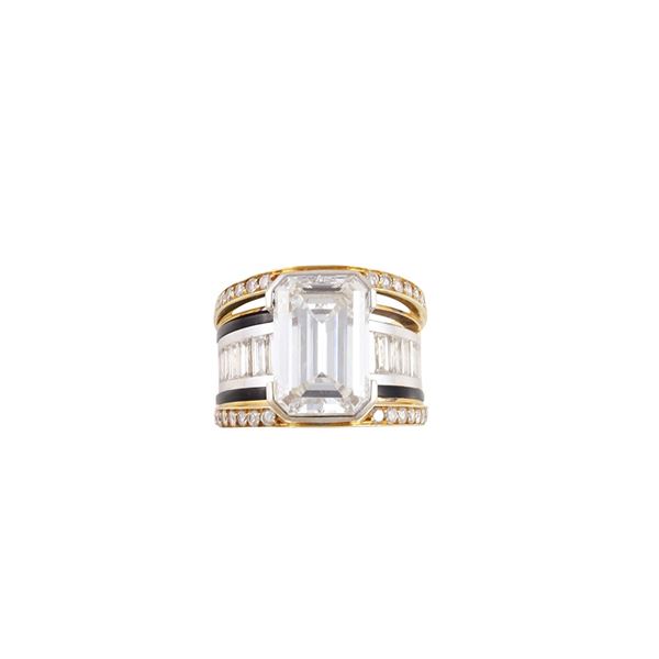 7,40 CT DIAMOND SET ON A 18KT GOLD RING WITH DIAMONDS AND ONYX, BY SCAVIA