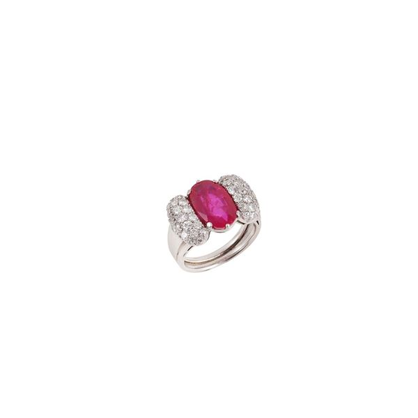 PLATINUM, MYANMAR RUBY AND DIAMONDS RING
