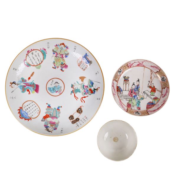 LOT - 清 粉彩人物杯碟及粉彩人物盘