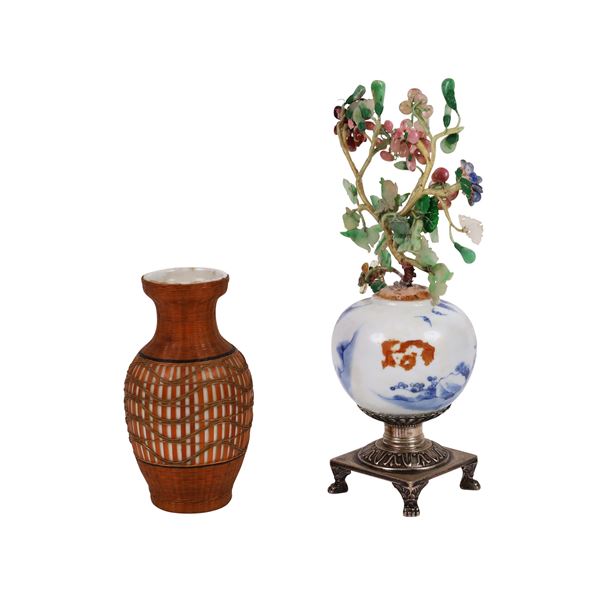 LOT - 清 小瓶 及 小花瓶改玉石盆栽