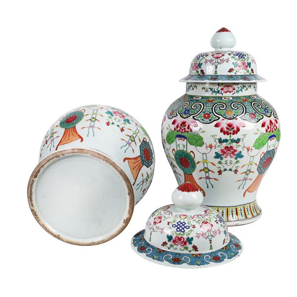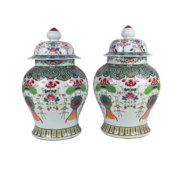 PAIR OF POTICHE - 清代 粉彩将军罐一对