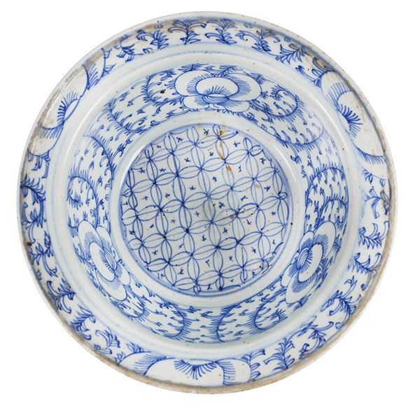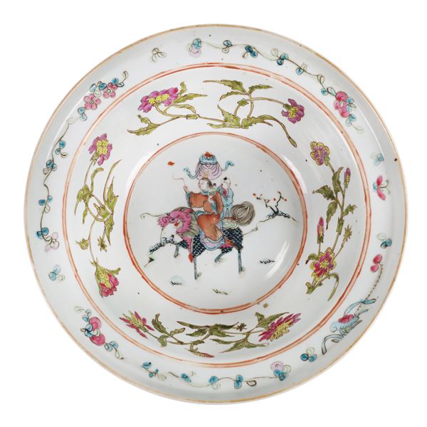 TWO BOWLS - 青花缠枝花卉盆 及人物粉彩盆