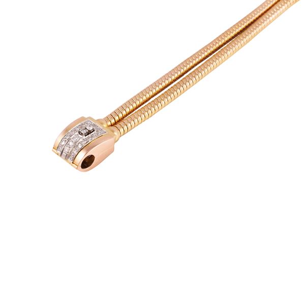 Elegant and unique, 18K pink gold and diamonds wristwatch with hidden cover and double snake bracelet with diamonds' clasp