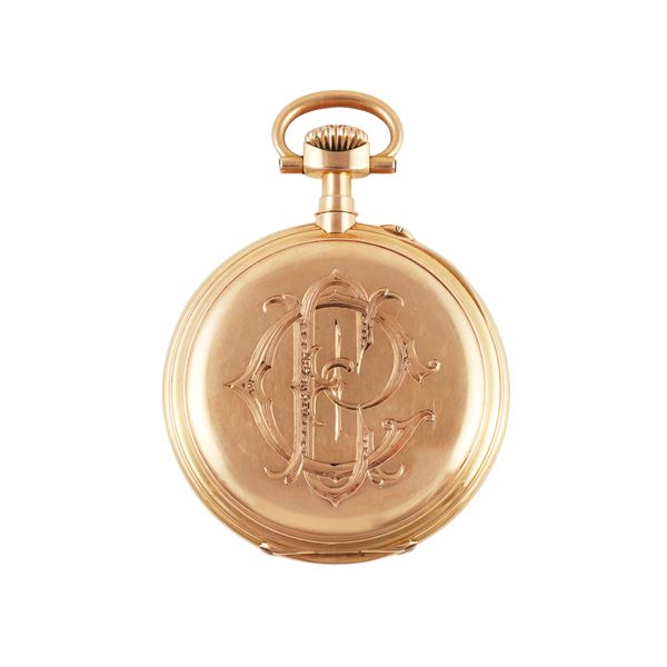Fine and rare, 18K pink gold pocket watch with 24 hours dial. Made circa 1910. Accompanied by the original box and gold chain