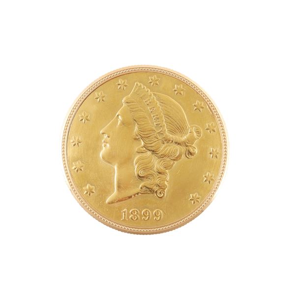 A very fine and rare, 18k gold, manual wind watch inserted in a U.S. 20 Dollar gold coin dated 1899