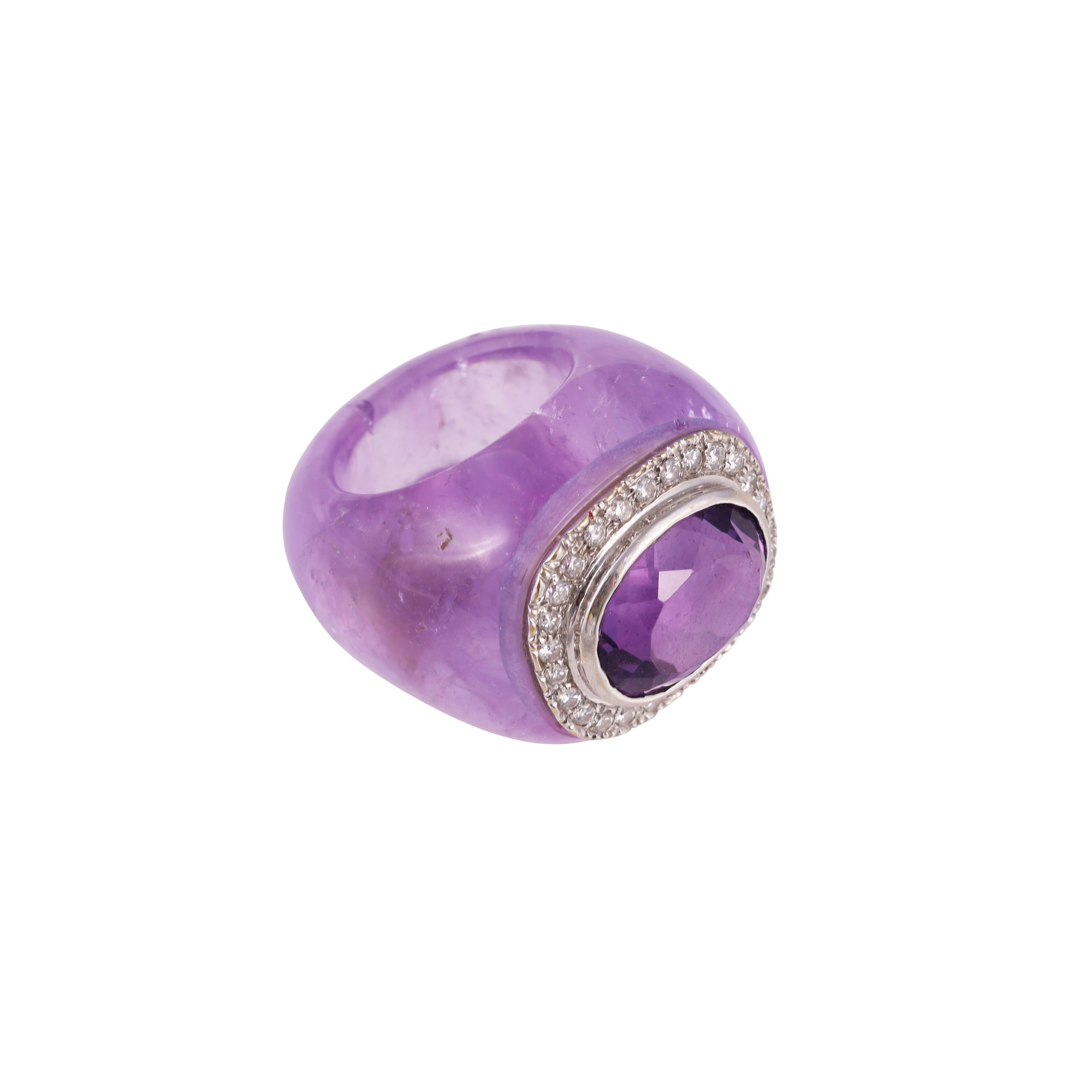 * 18KT GOLD, AMETHYST AND DIAMONDS RING