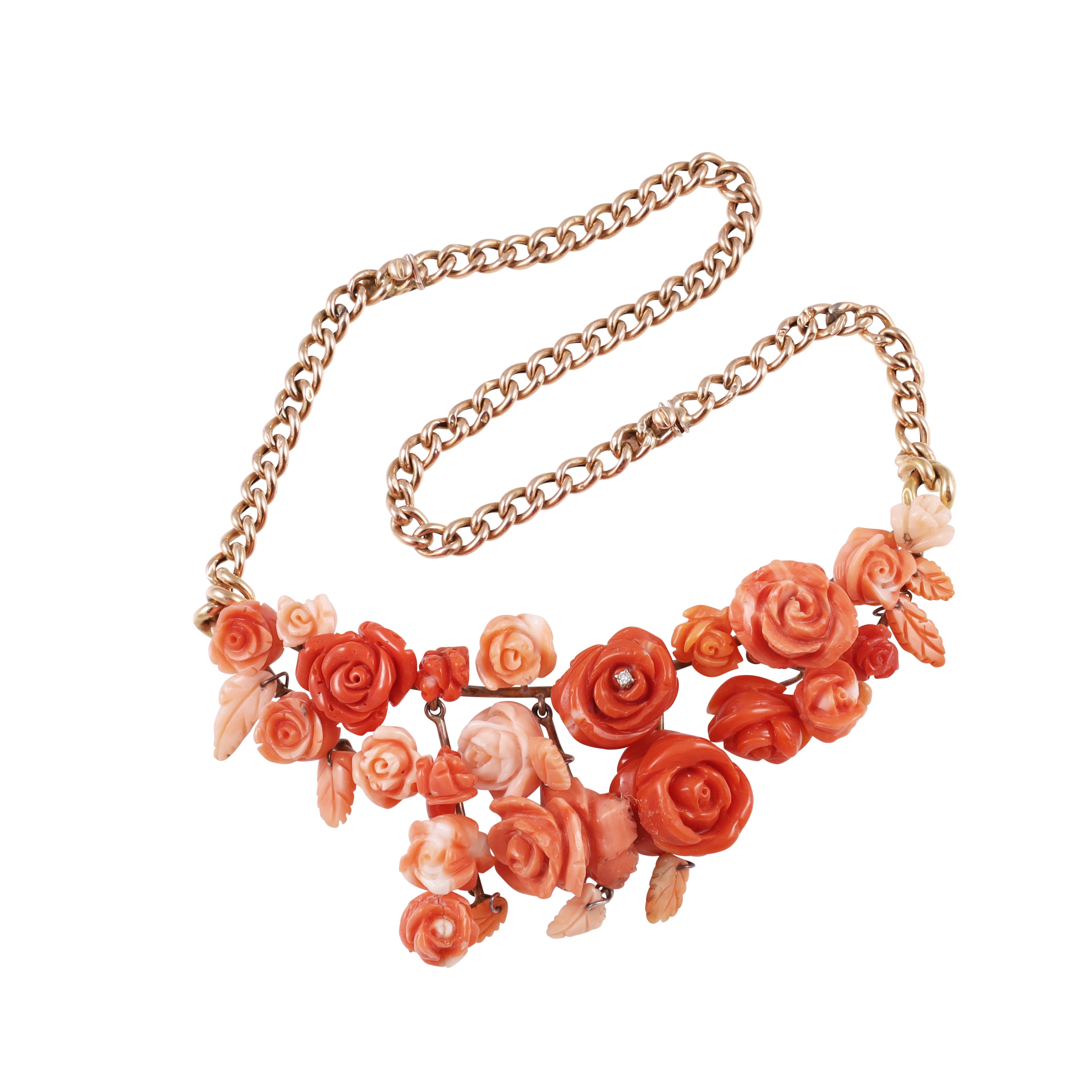 18KT GOLD AND SILVER NECKLACE WITH CORAL