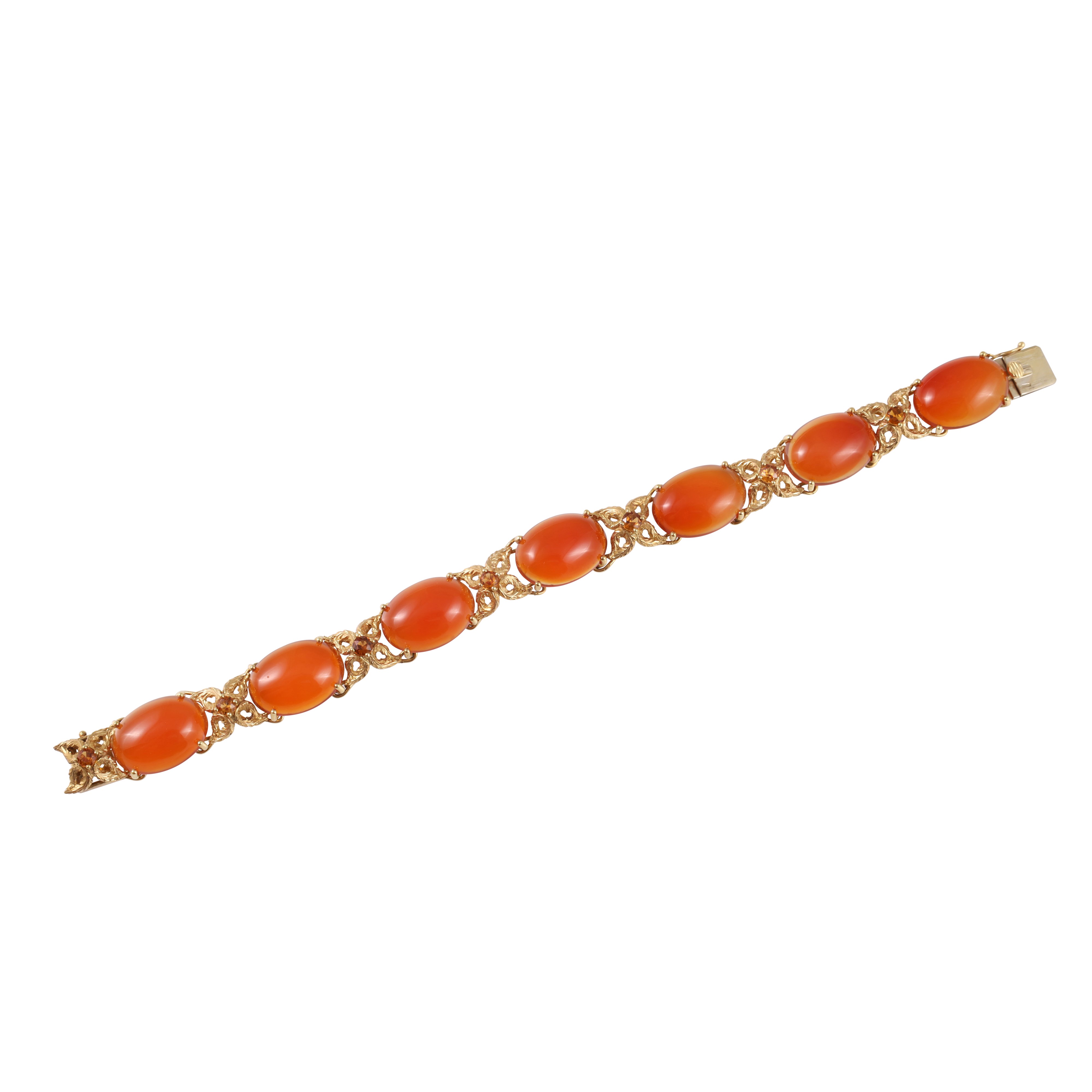 ~ 18KT GOLD BRACELET WITH CARNELIAN AND QUARTZ
