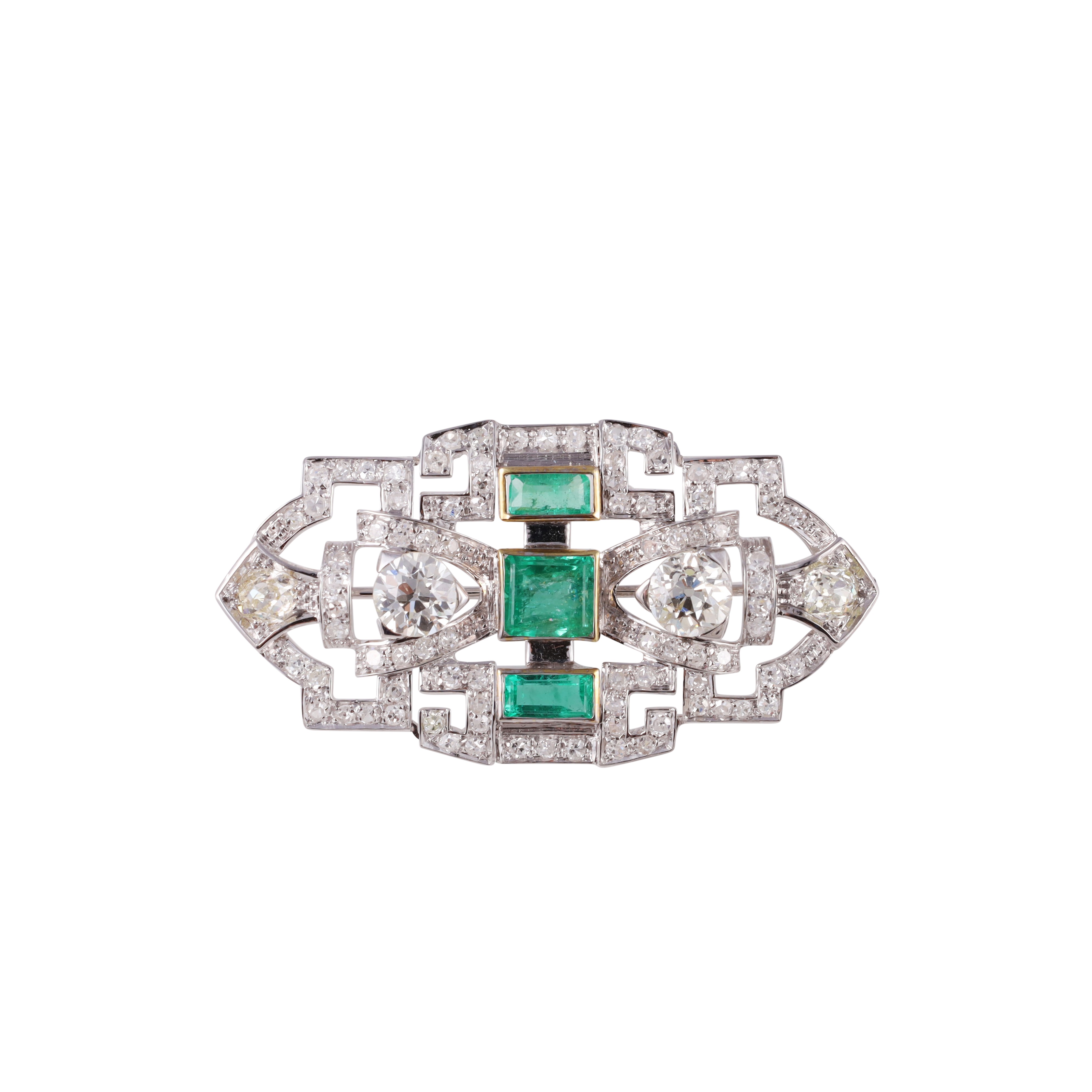 * 18KT GOLD BROOCH WITH EMERALDS AND DIAMONDS