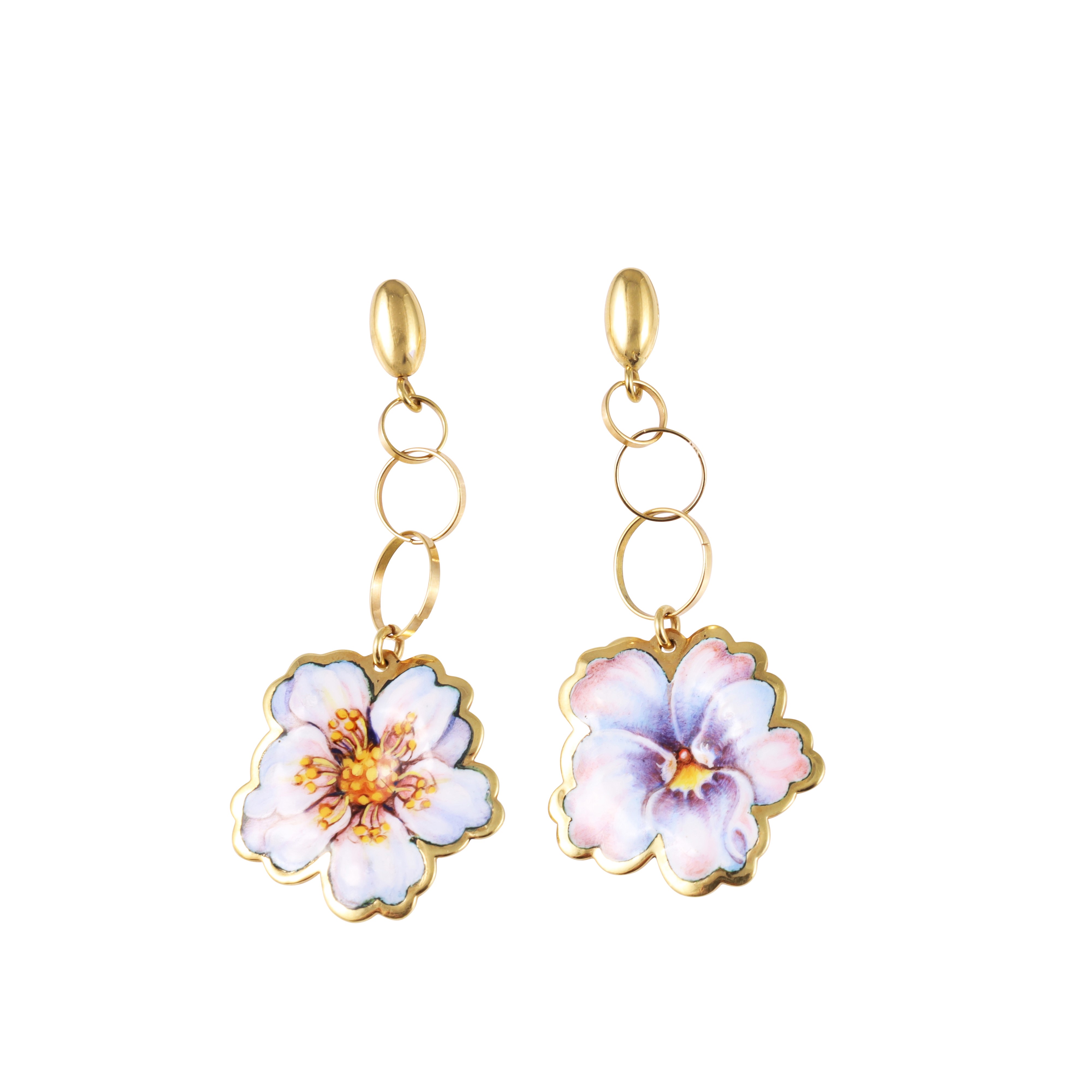* 18KT GOLD, COPPER AND ENAMEL EARRINGS, BY GABRIELLA RIVALTA "I fiori di Giano"