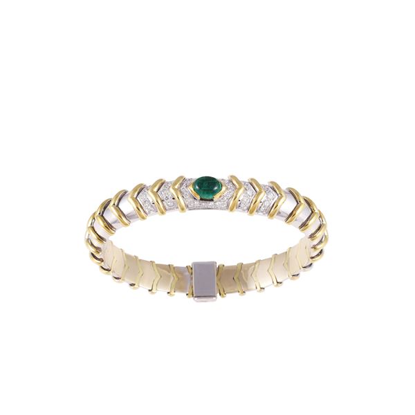 18KT GOLD, DIAMONDS AND EMERALD BANGLE
