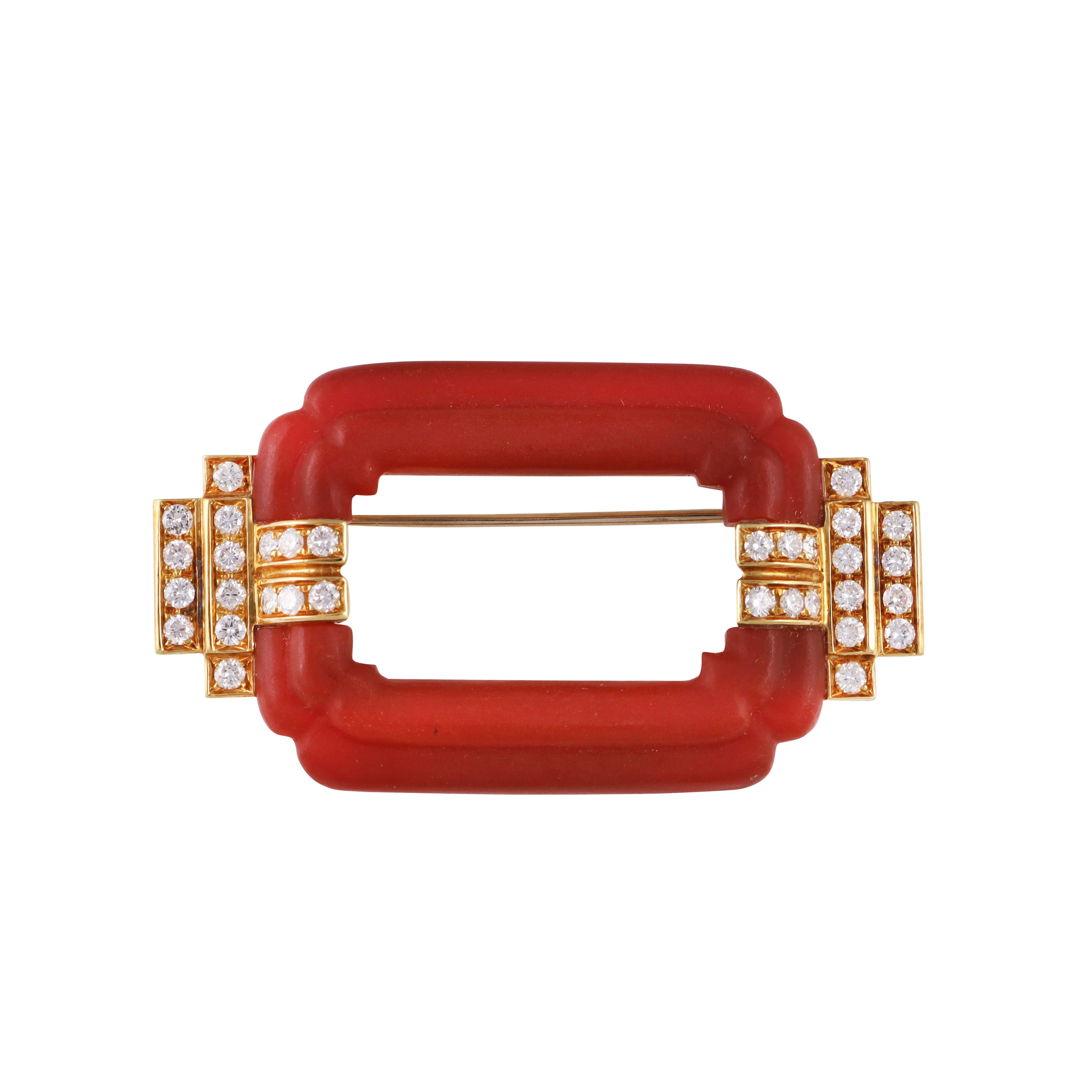* 18KT GOLD, DIAMONDS AND GLASS BROOCH