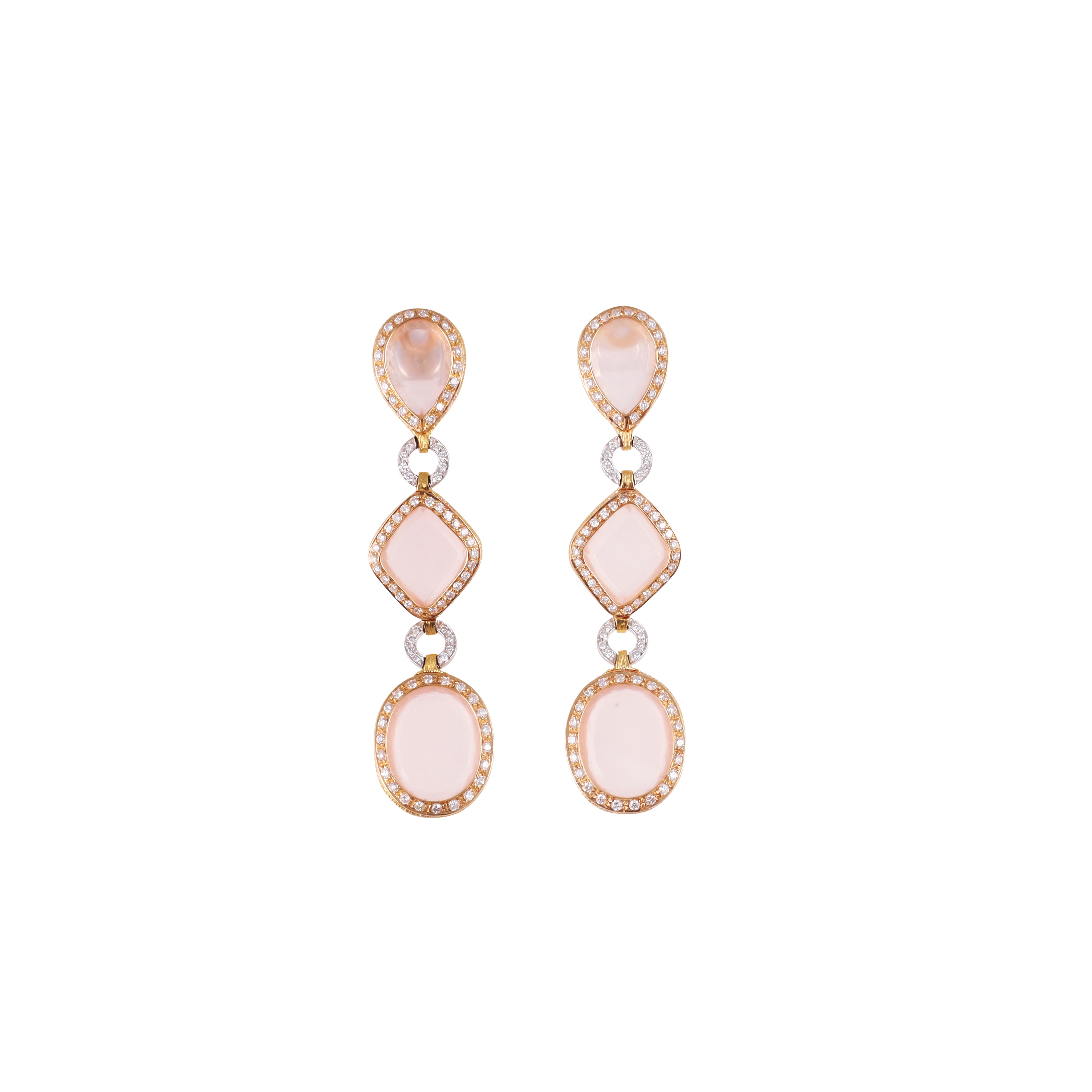 18KT GOLD EARRINGS WITH QUARTZ AND DIAMONDS