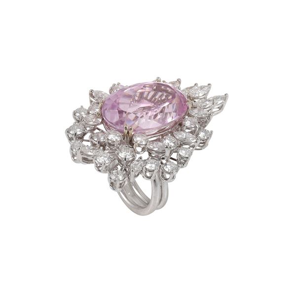 18KT GOLD, KUNZITE AND DIAMONDS RING