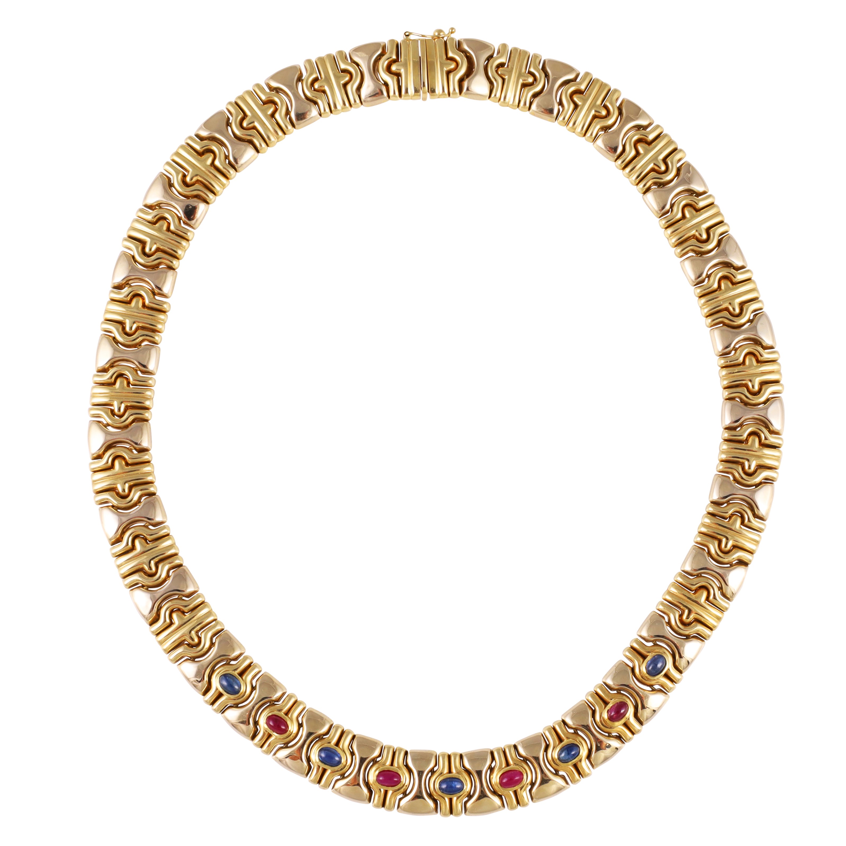 18KT GOLD NECKLACE WITH CABOCHON-CUT SAPPHIRES AND RUBIES