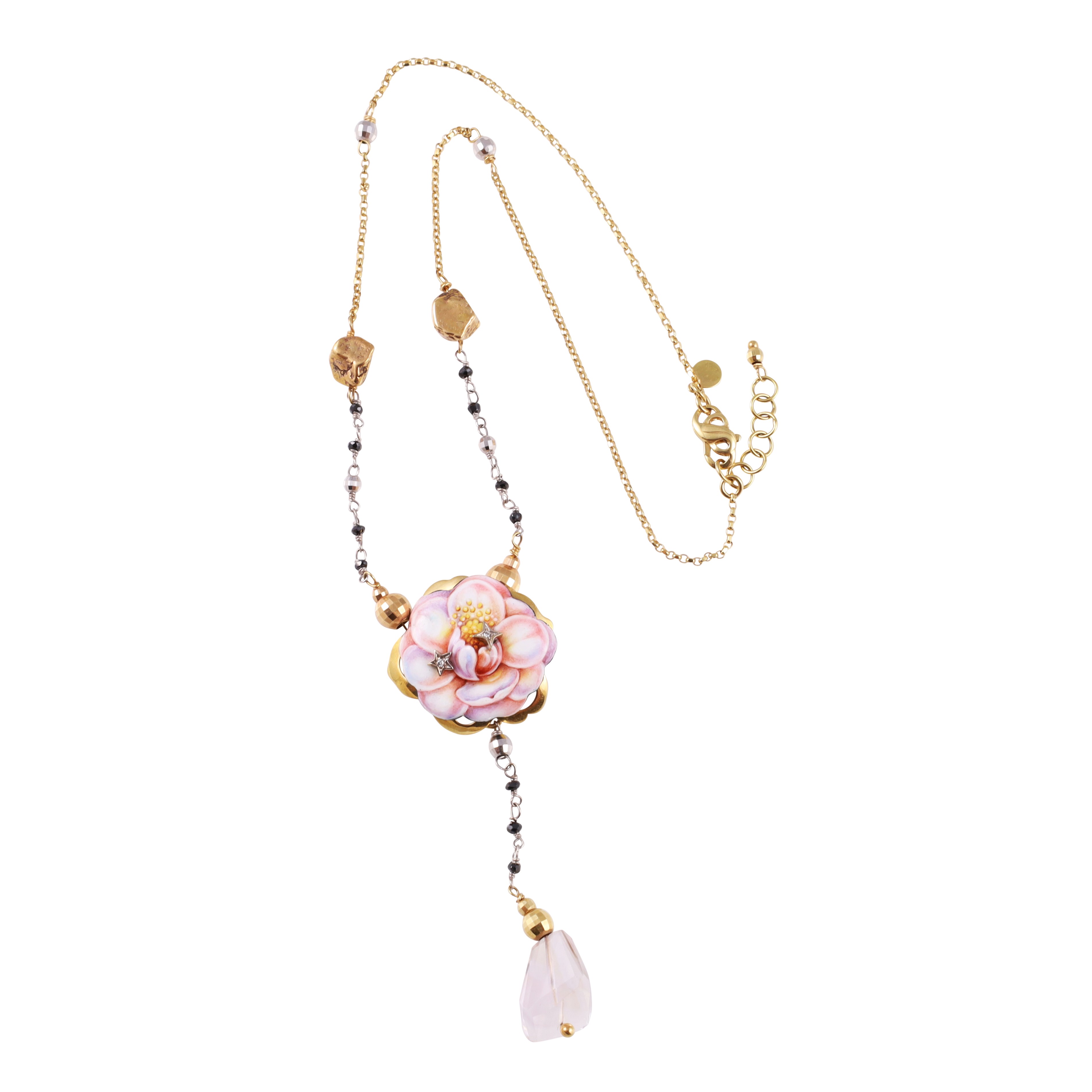 * 18KT GOLD, QUARTZ, DIAMONDS, ONYX AND ENAMEL NECKLACE, BY GABRIELLA RIVALTA