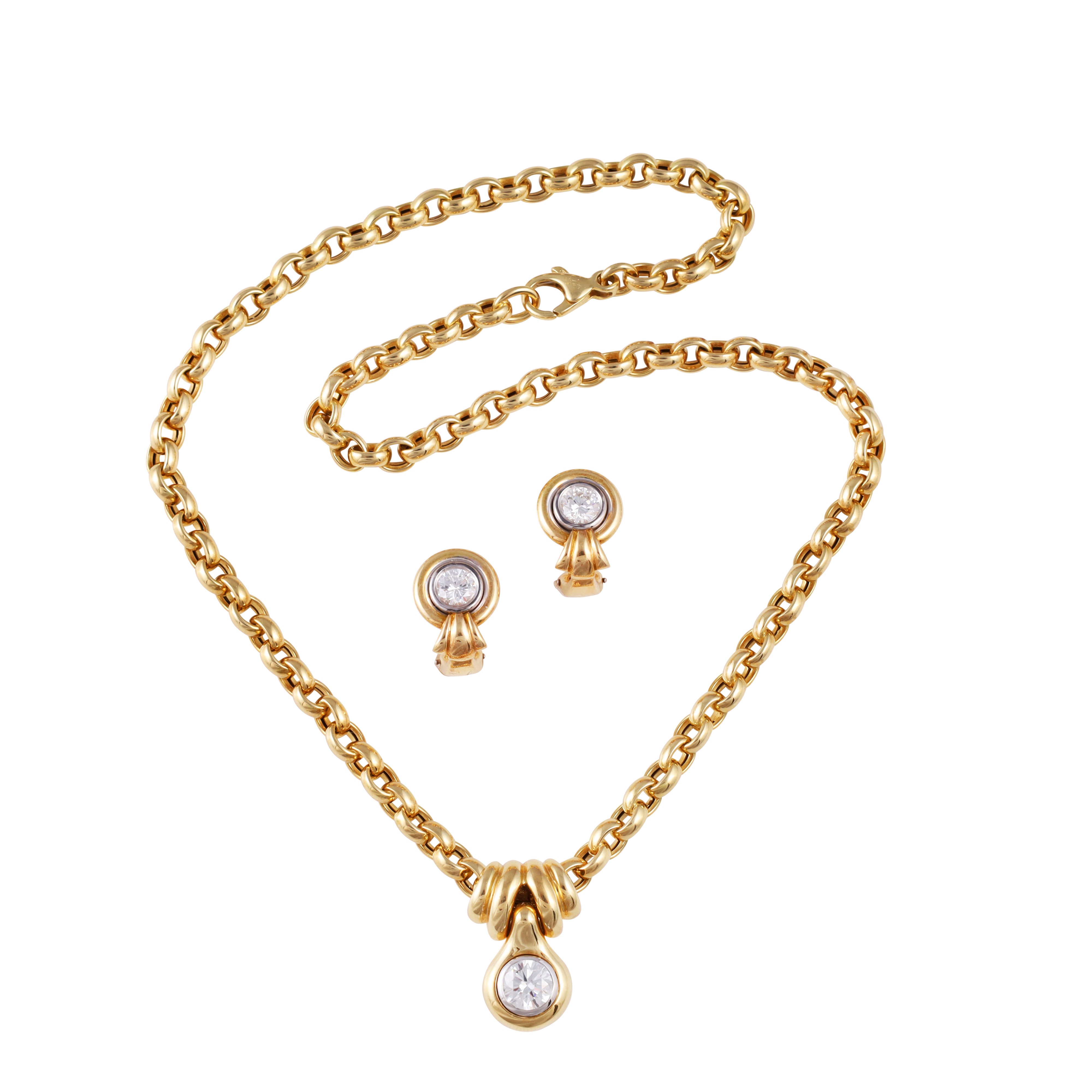 LOT OF 18KT GOLD NECKLACE AND A PAIR OF EARRINGS SET WITH DIAMONDS, BY CARL BUCHERER
