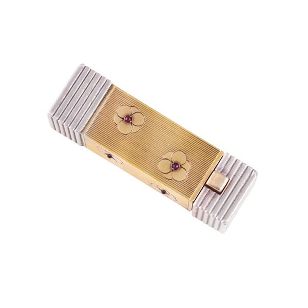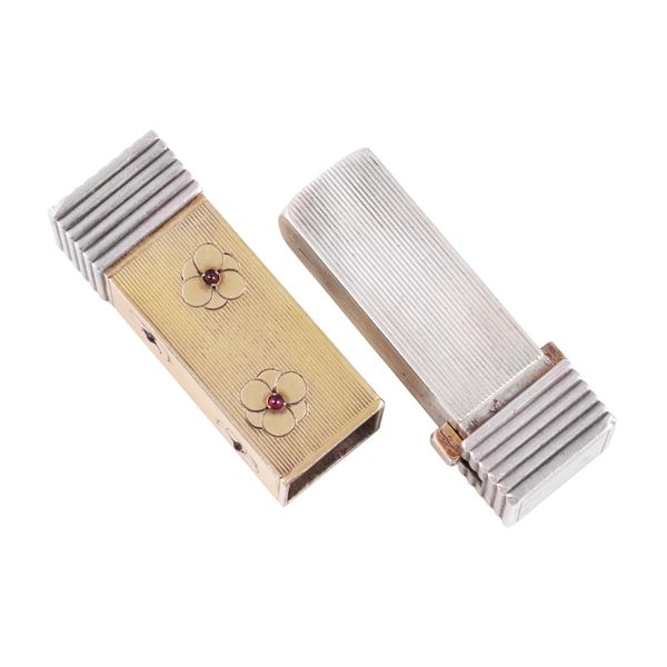 LOT OF SILVER AND 18KT GOLD COMPACT AND LIPSTICK CASE WITH RUBIES