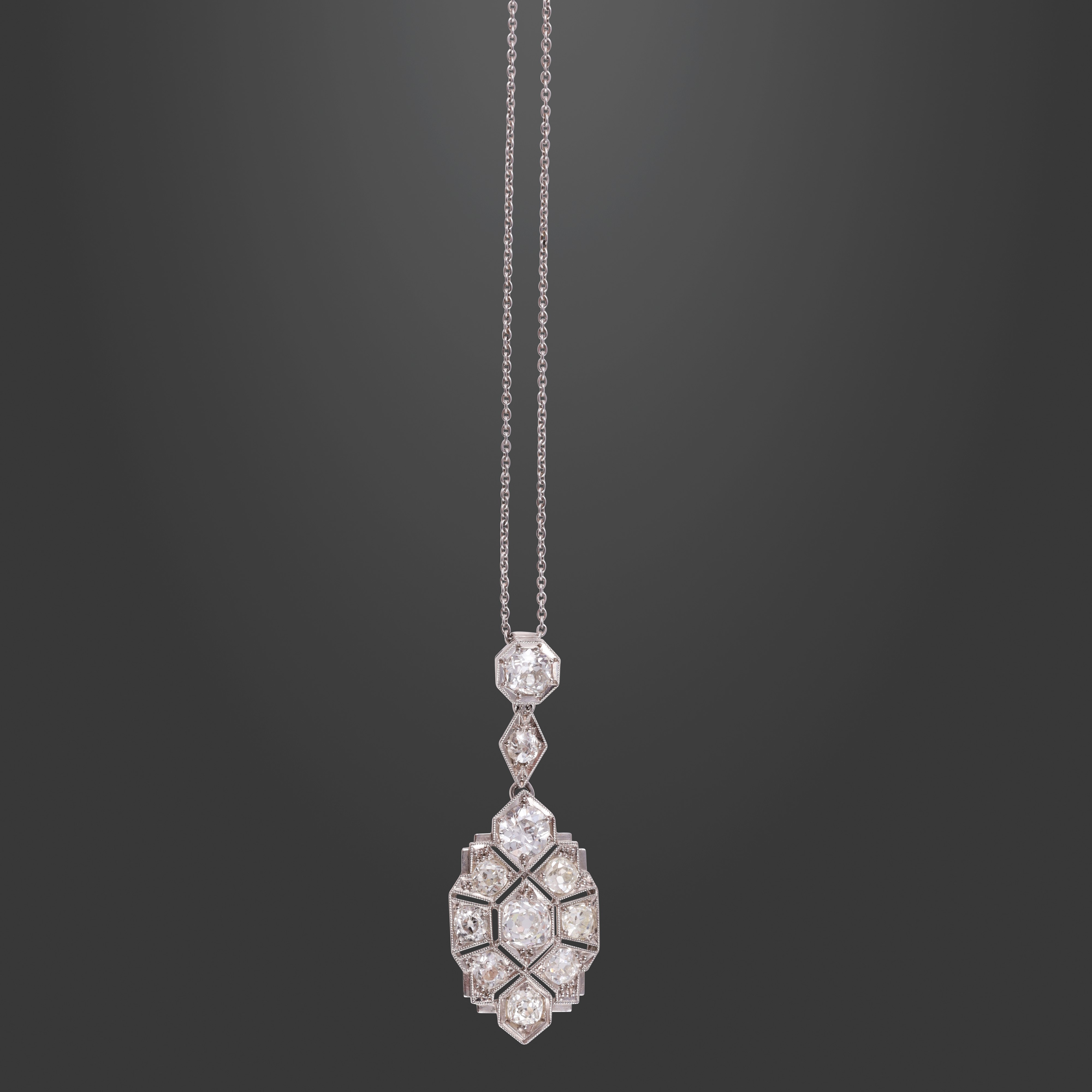 PLATINUM AND OLD EUROPEAN CUT DIAMONDS PENDANT WITH CHAIN