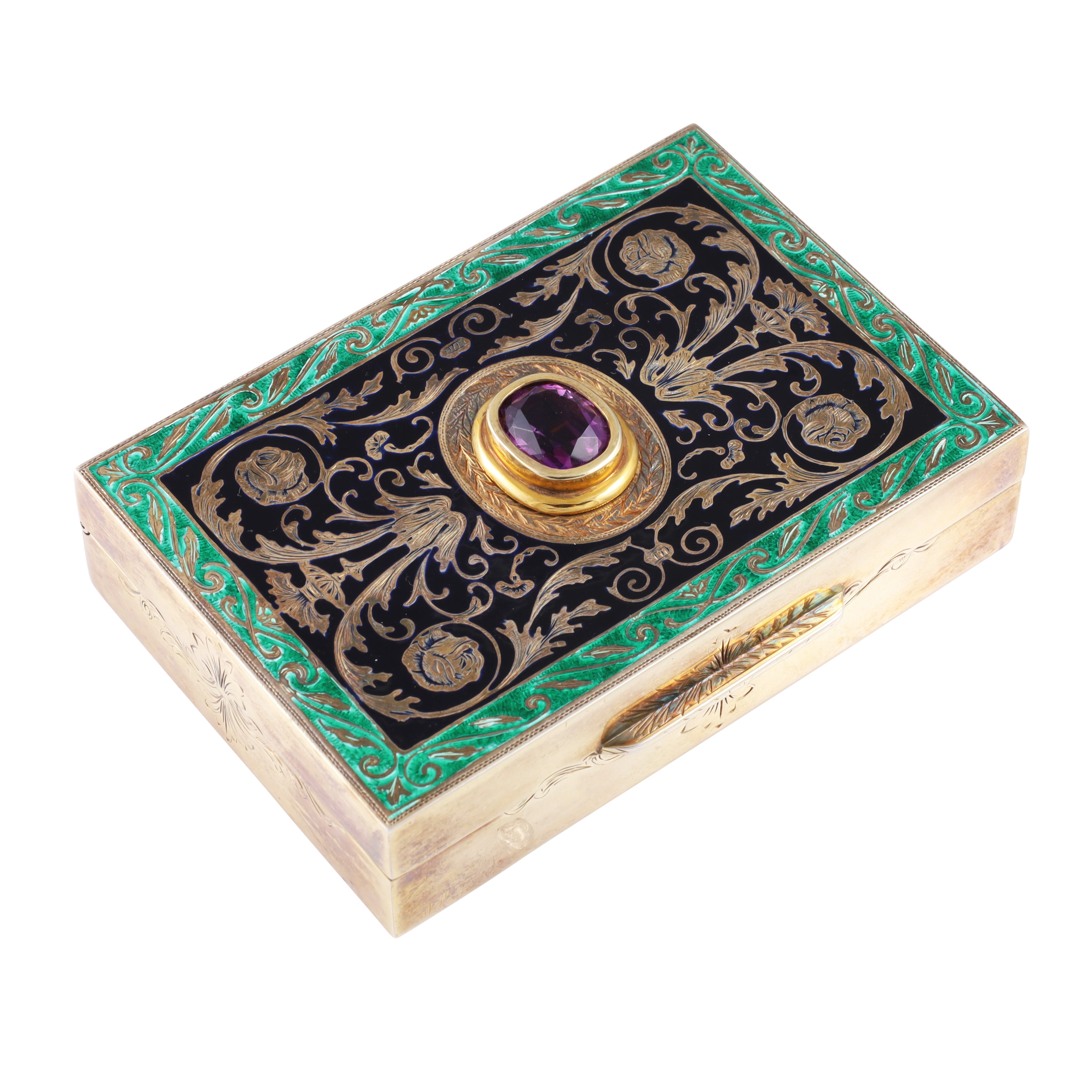 SILVER BOX WITH ENAMEL AND AMETHYST