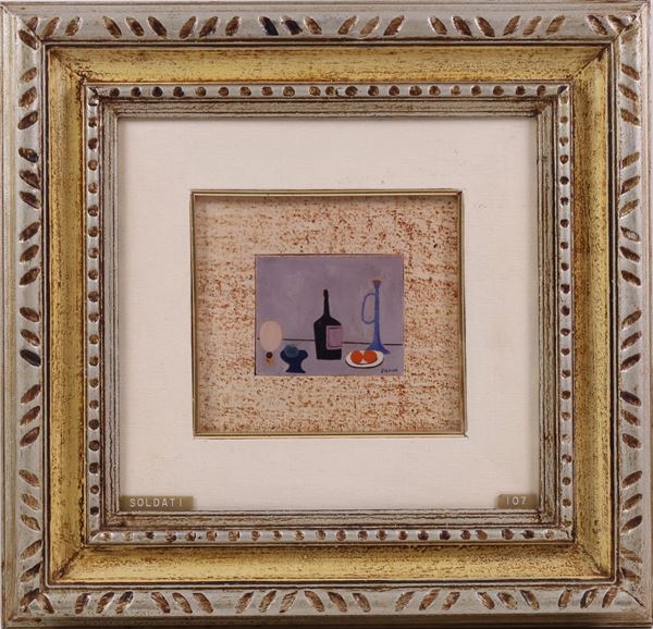 Soldati Atanasio, Natura morta, Olio su tela, cm 10 x 8,5, 1948.