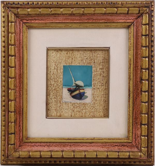 Vespignani Renzo, Barche A Riva, Olio su tela, cm 8 x 10.