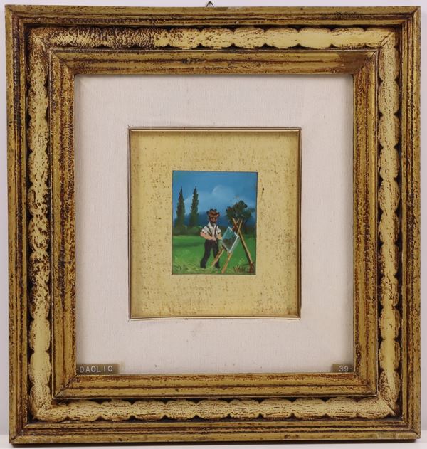 Daolio Wandino, Il Pittore Naif, Olio su masonite, cm 8 x 10.
