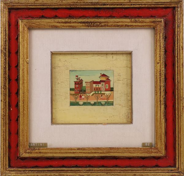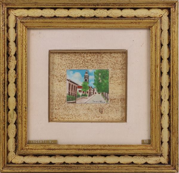 Incerti Viazzoli Gino, Paese, Olio su masonite, cm 10 x 8.