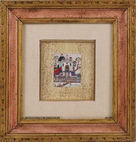Rovesti Bruno, La Piazza, Olio su masonite, cm 8,5 x 7,5, 1950.