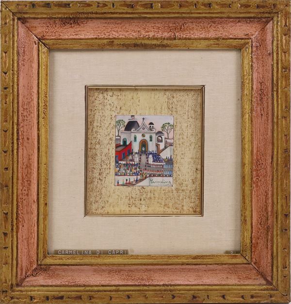 Di Capri Carmelina, Chiesetta, Olio su legno, cm 8 x 10, 1967.