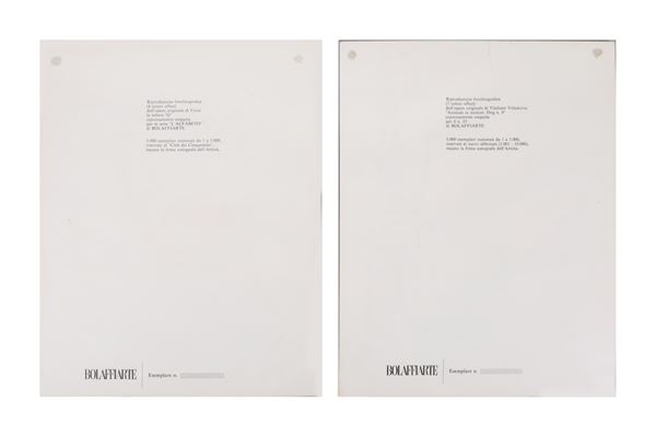 Photolithographic reproduction (7-color offset) of Vladimir Velickovis's original work, "Animals in Motion. Dog No. 9," specially created for issue 25 of BOLAFFIARTE.