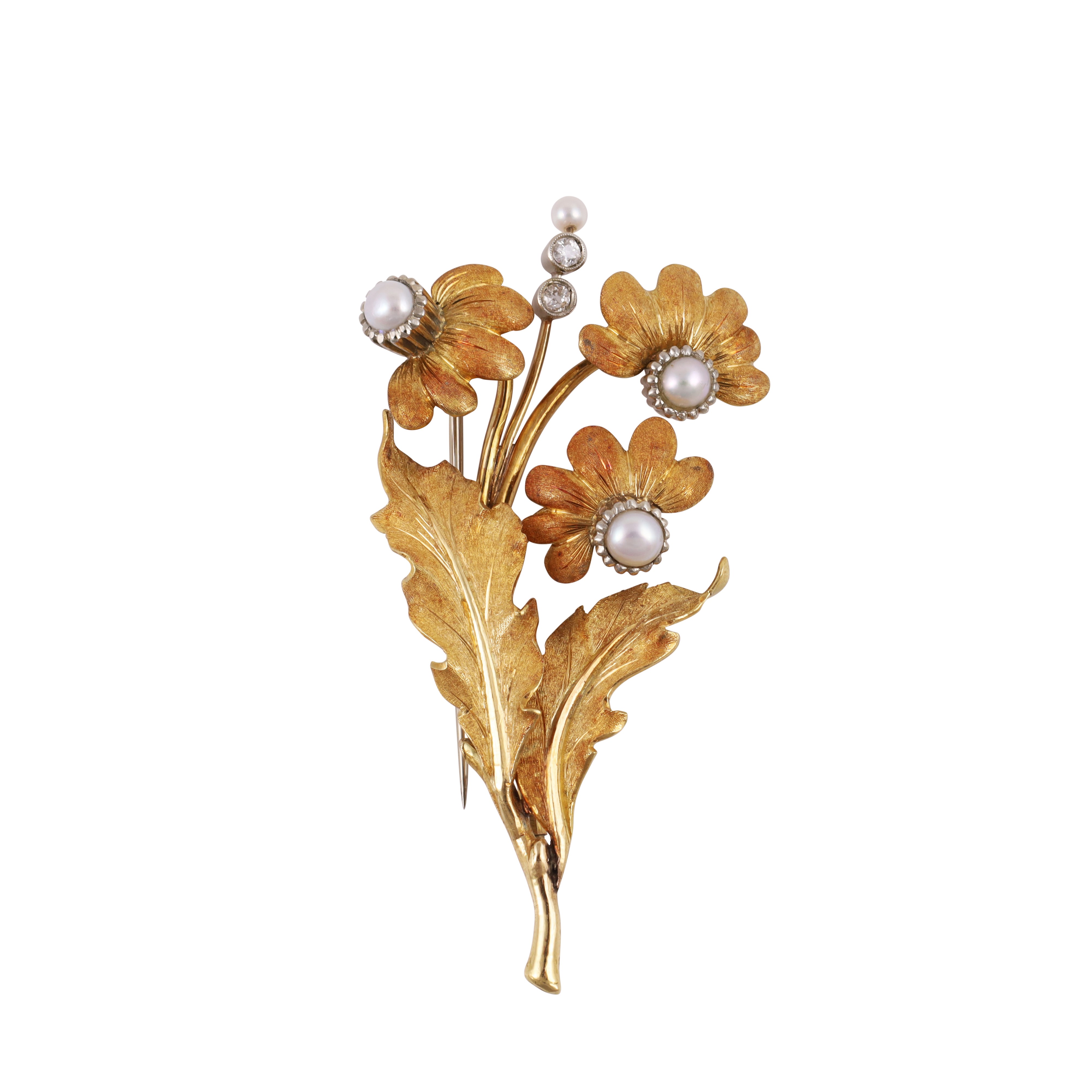 18KT GOLD BROOCH SET WITH CULTURED PEARLS AND DIAMONDS, BY MINOTTO