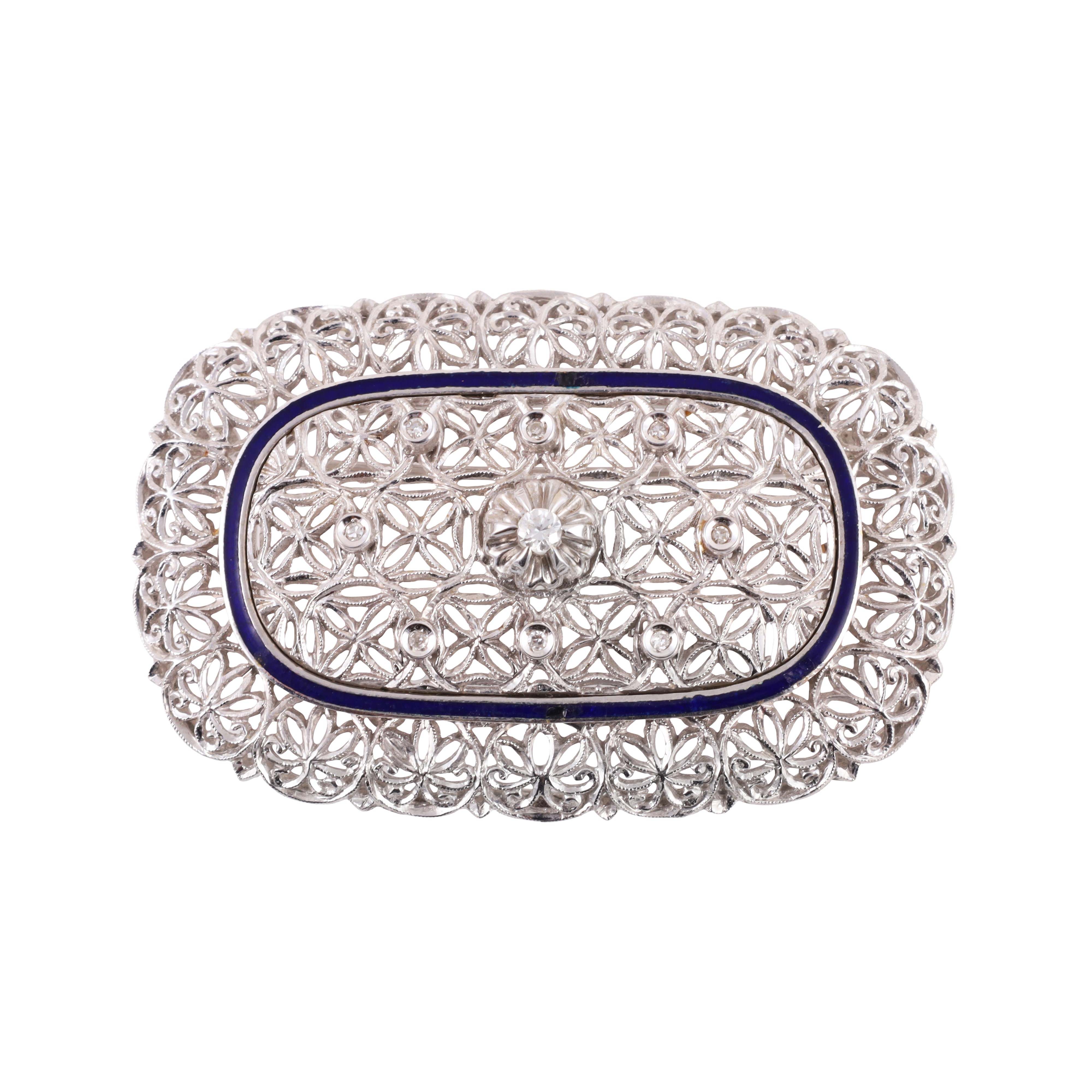 18KT GOLD BROOCH WITH DIAMONDS AND ENAMEL