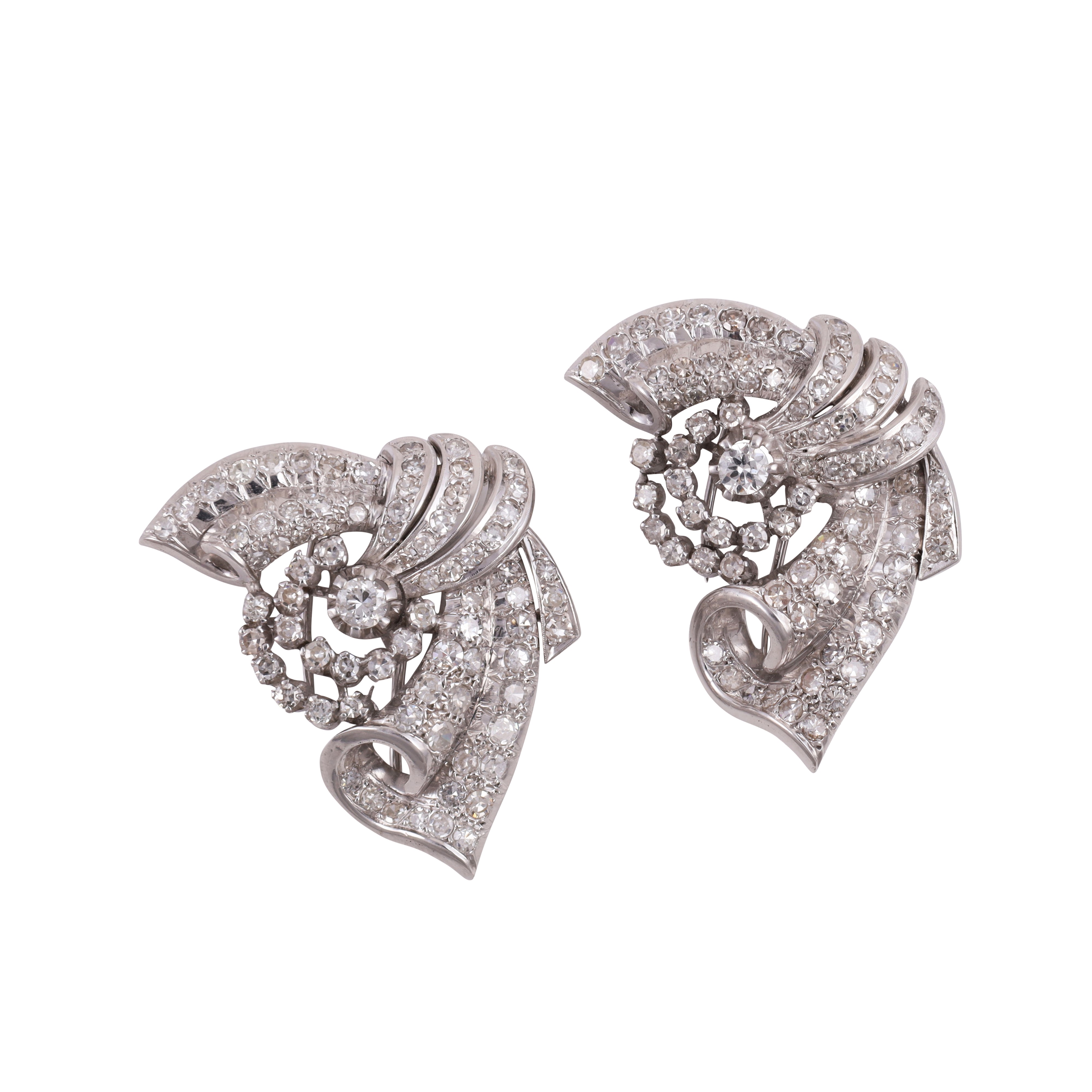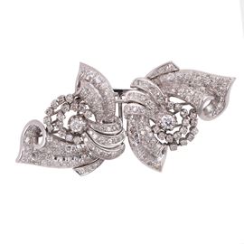 18KT GOLD DOUBLE CLIP BROOCH SET WITH DIAMONDS
