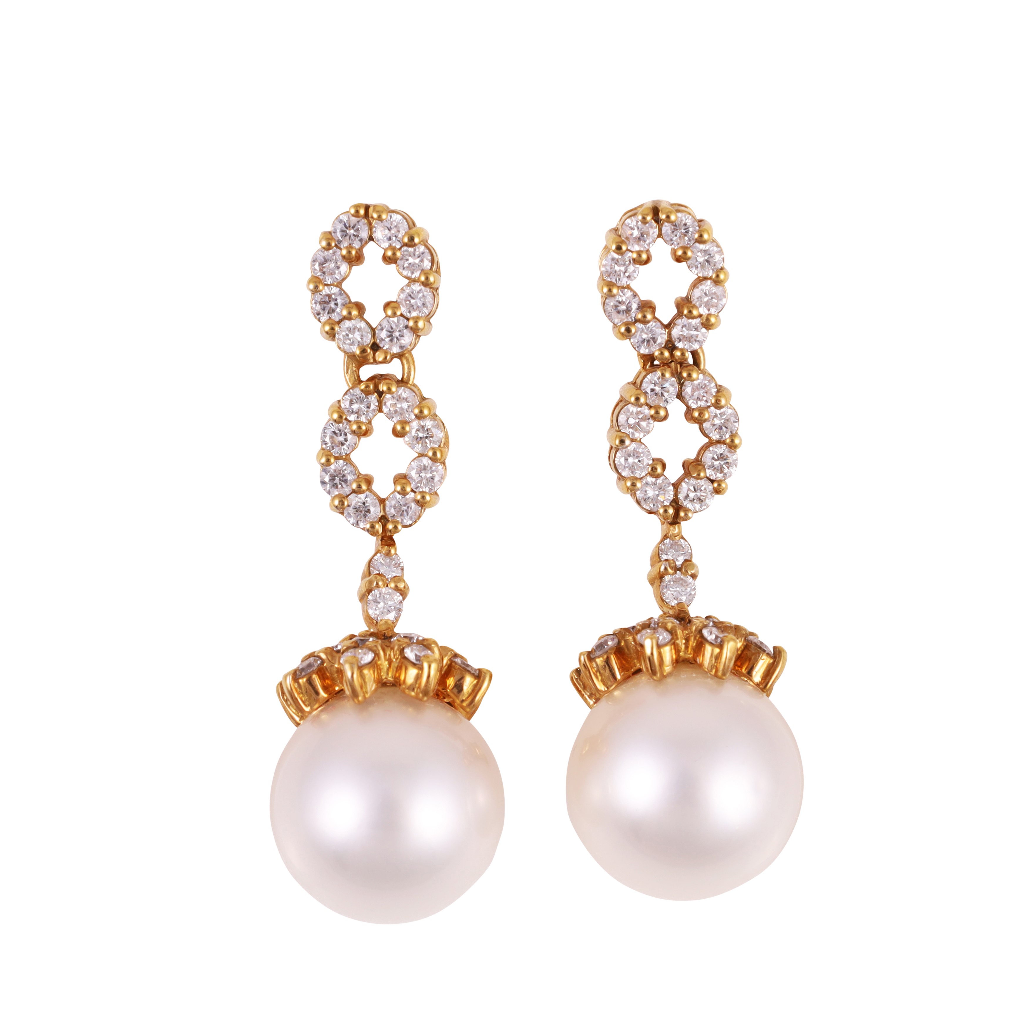 18KT GOLD EARRINGS SET WITH DIAMONDS AND CULTURED PEARLS