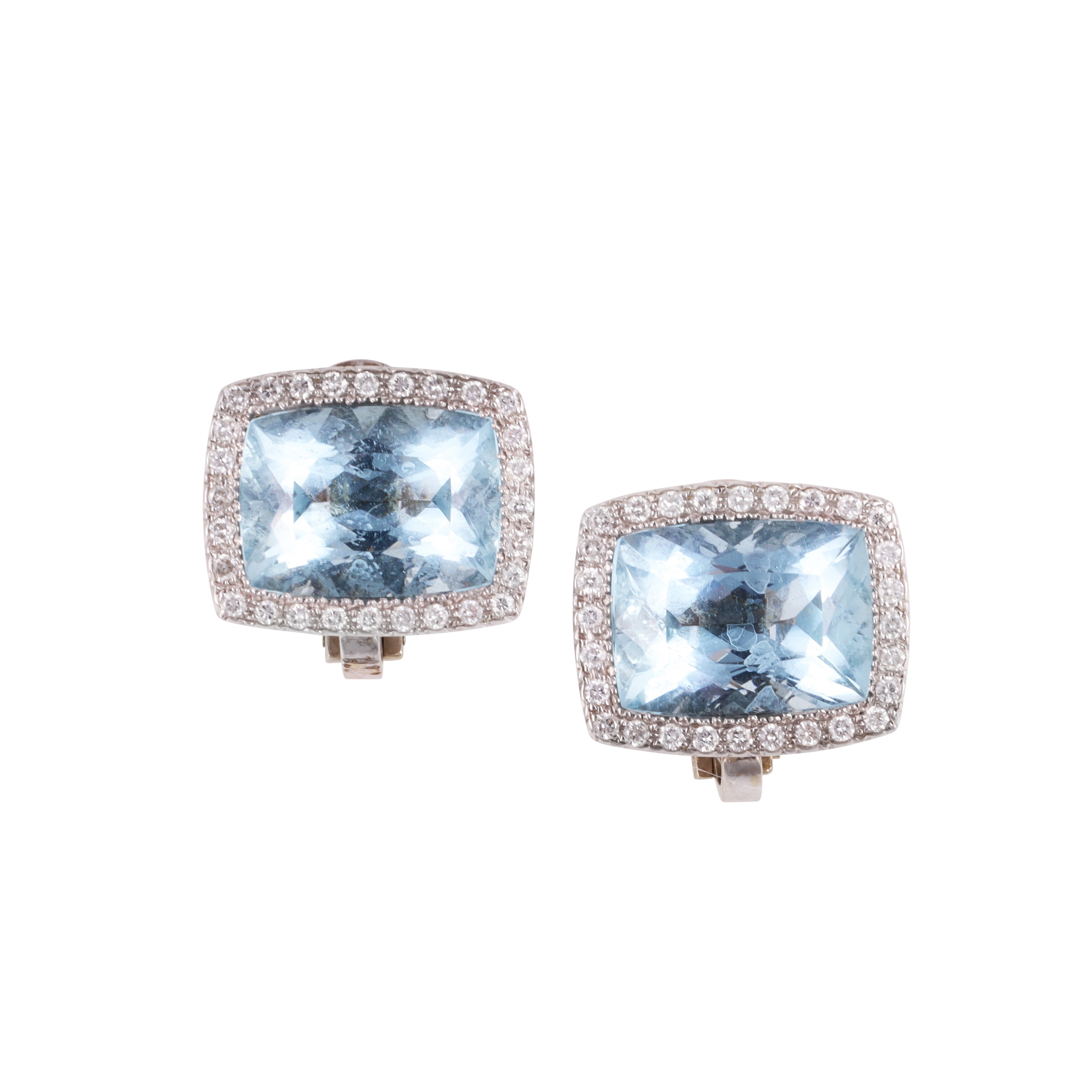 18KT GOLD EARRINGS WITH AQUAMARINE AND DIAMONDS