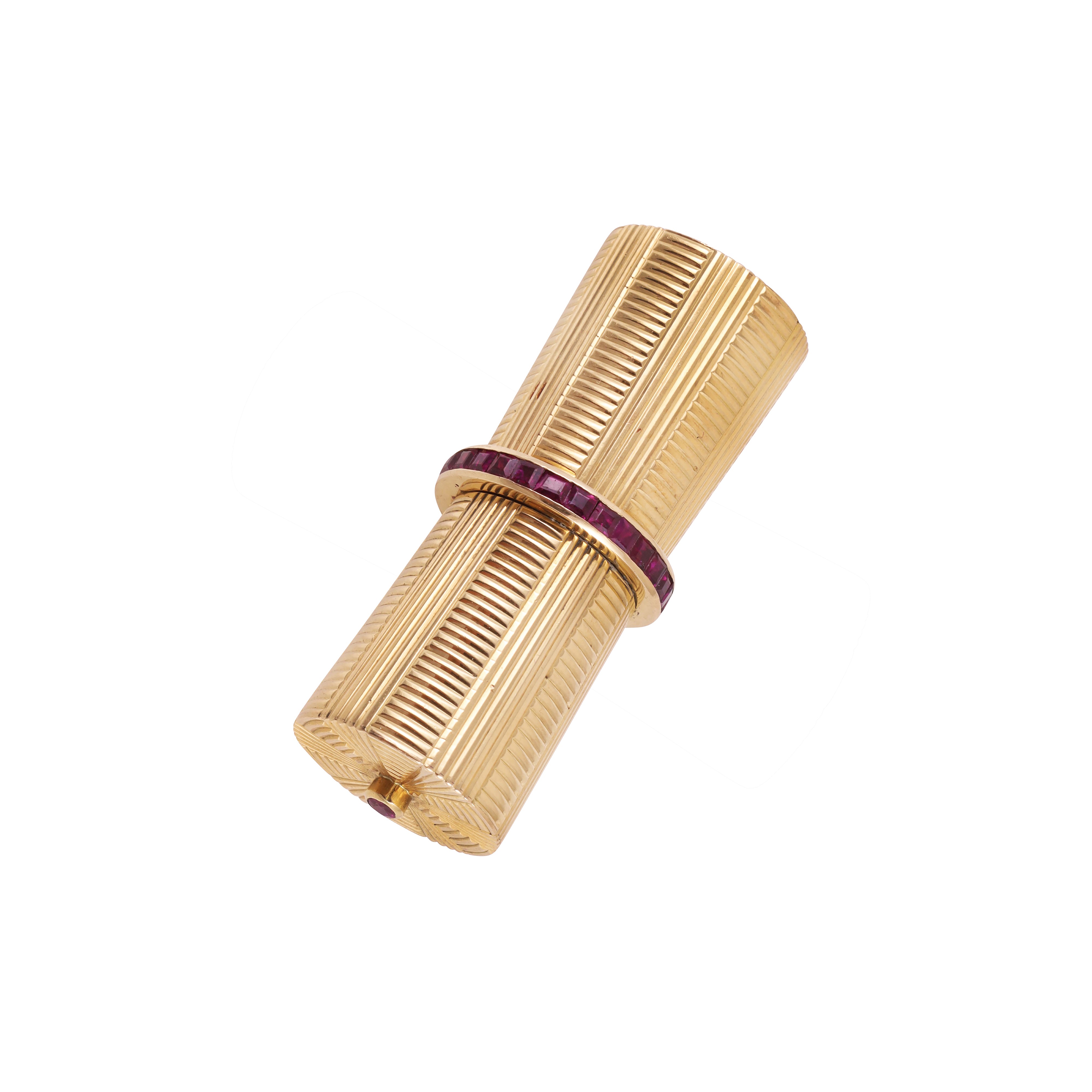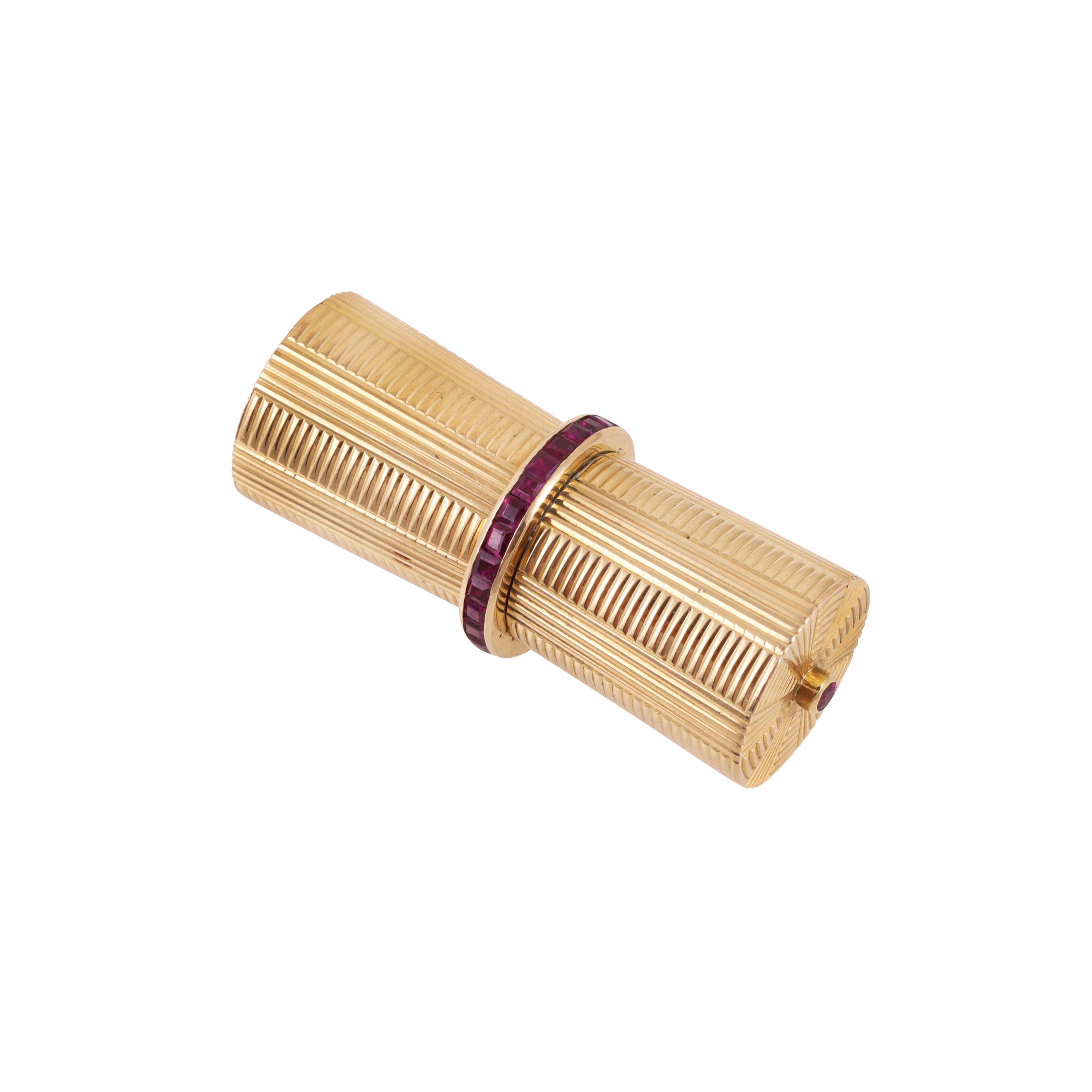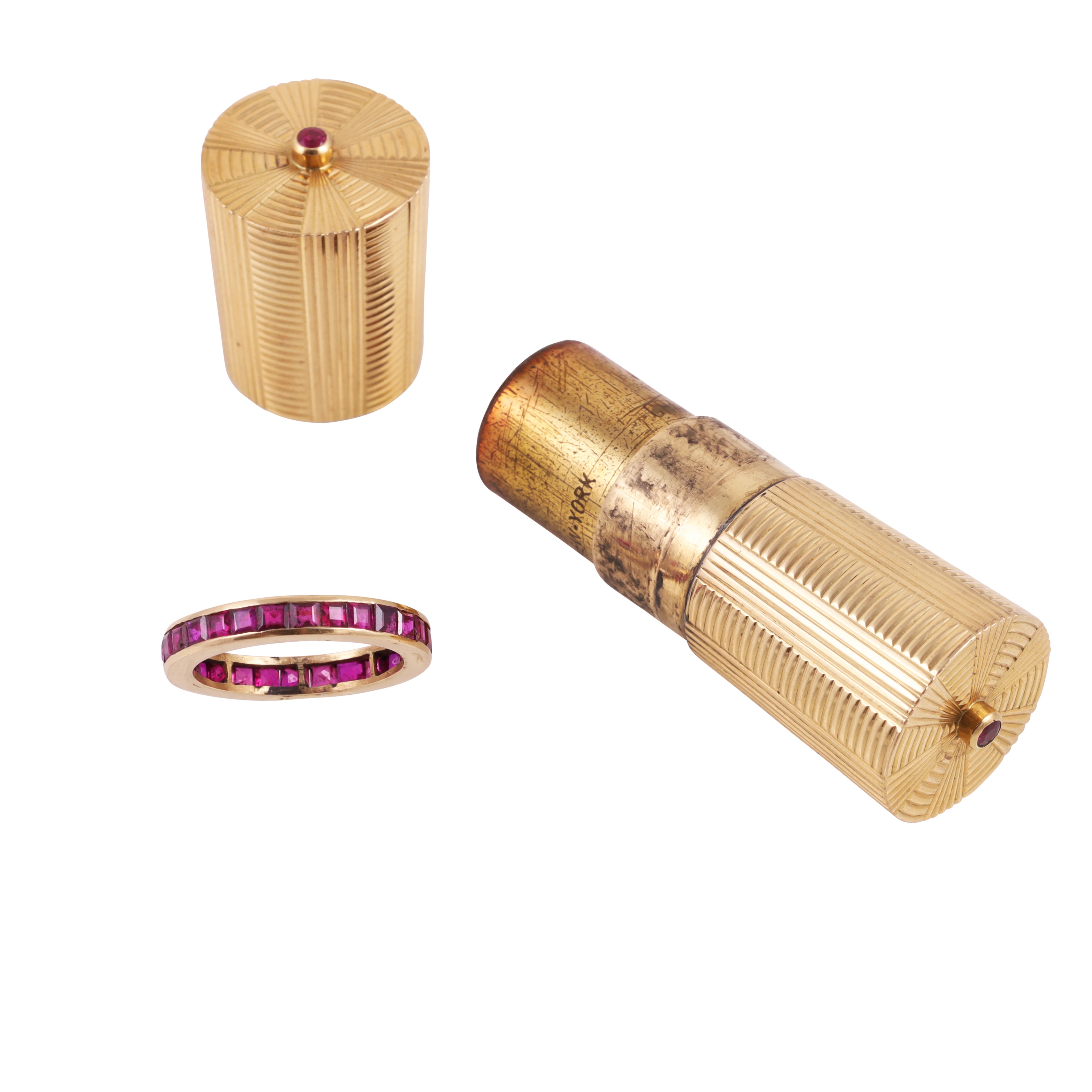 18KT GOLD LIPSTICK CASE WITH RUBIES (one missing)