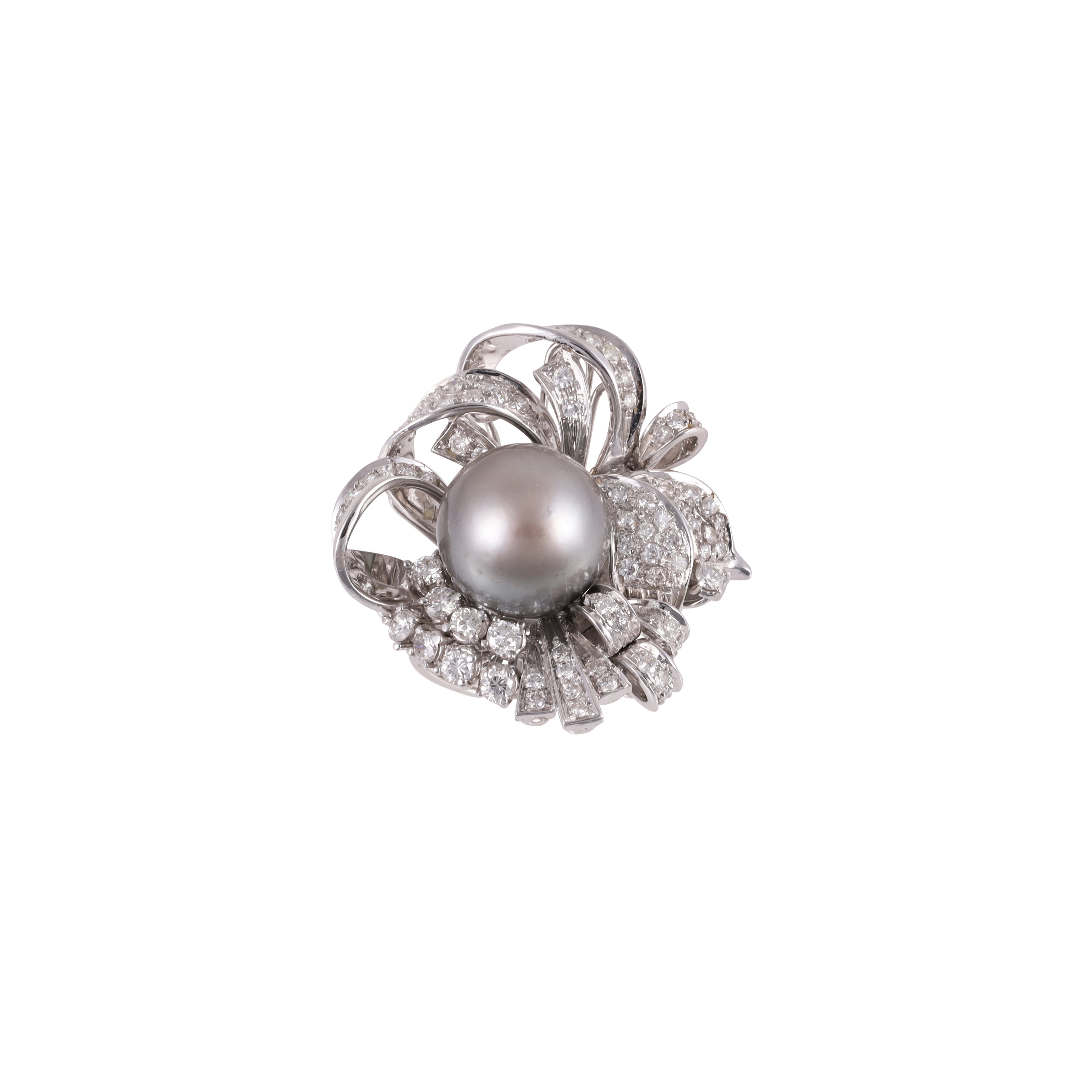 18KT GOLD RING WITH DIAMONDS AND CULTURED PEARL