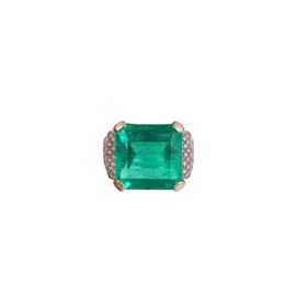18KT GOLD RING WITH EMERALD AND DIAMONDS