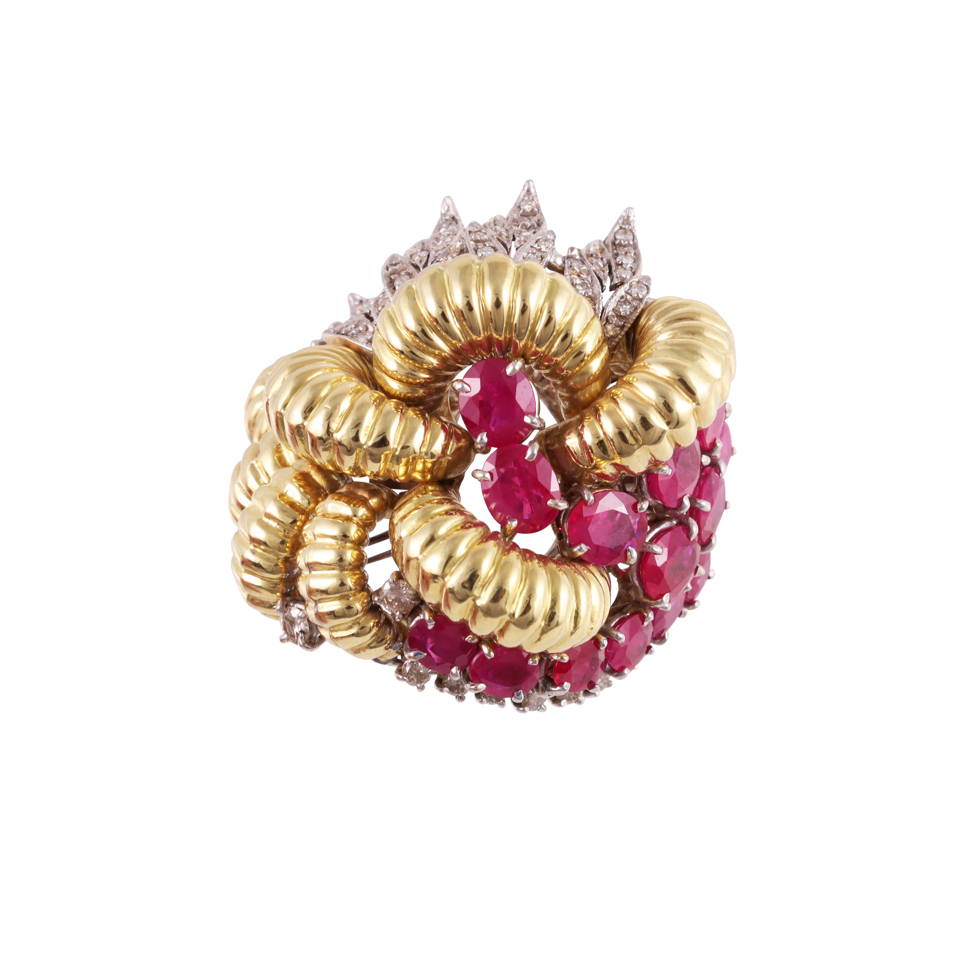 18KT GOLD RING WITH OVAL-CUT RUBIES AND DIAMONDS