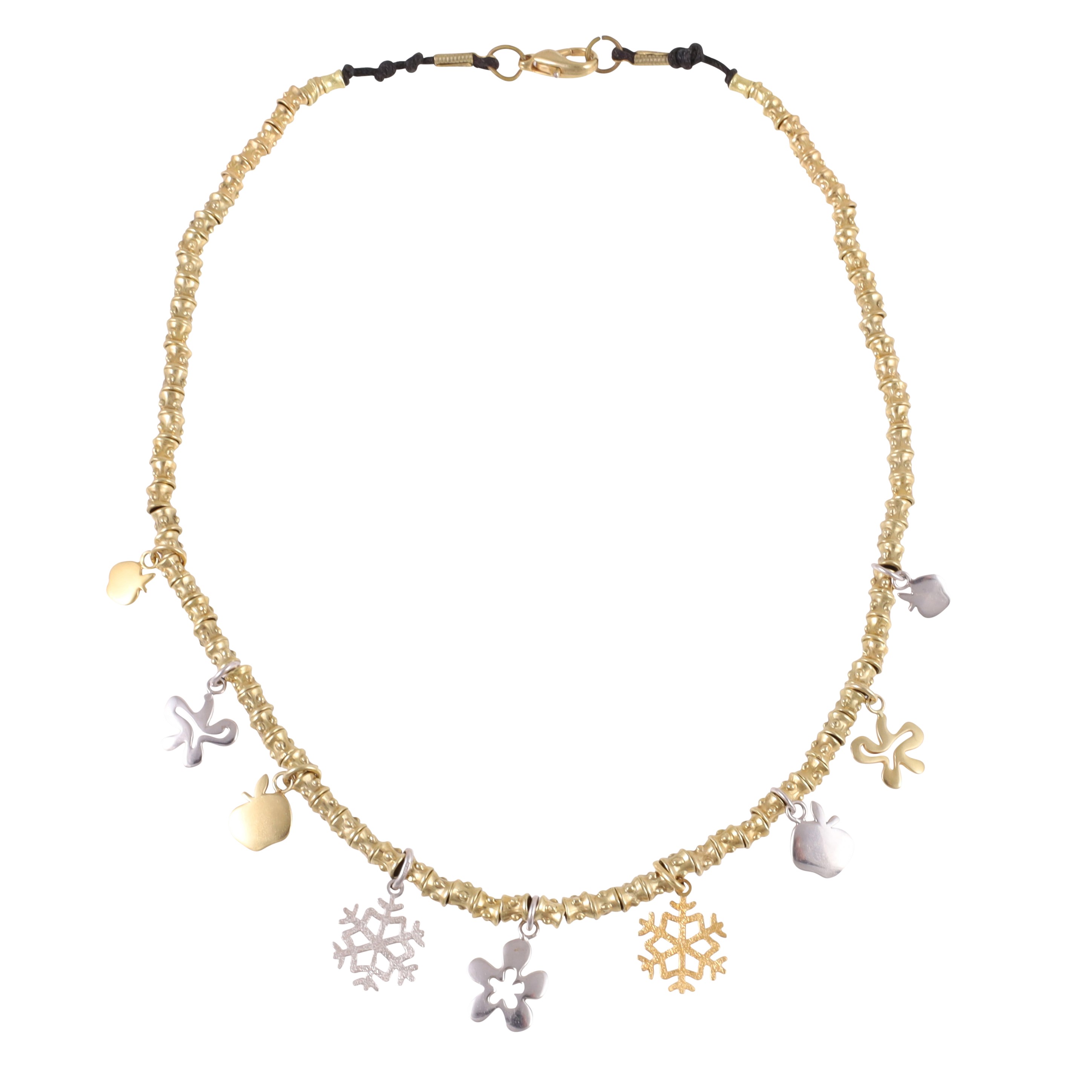 A SINGLE STRAND OF 18KT GOLD BEADS WITH PENDANTS (metal clasp)