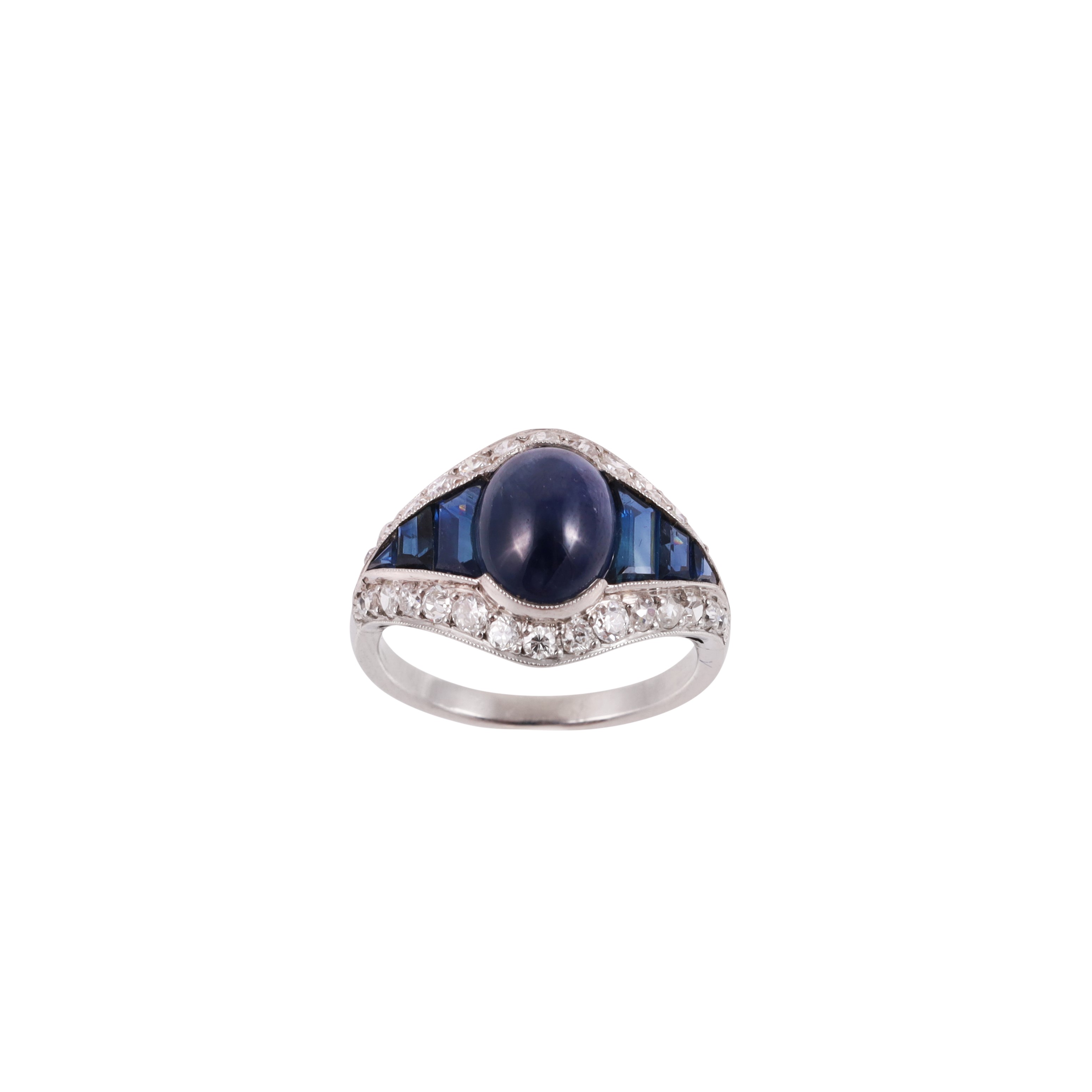 PLATINUM RING WITH SAPPHIRES AND OLD EUROPEAN CUT DIAMONDS